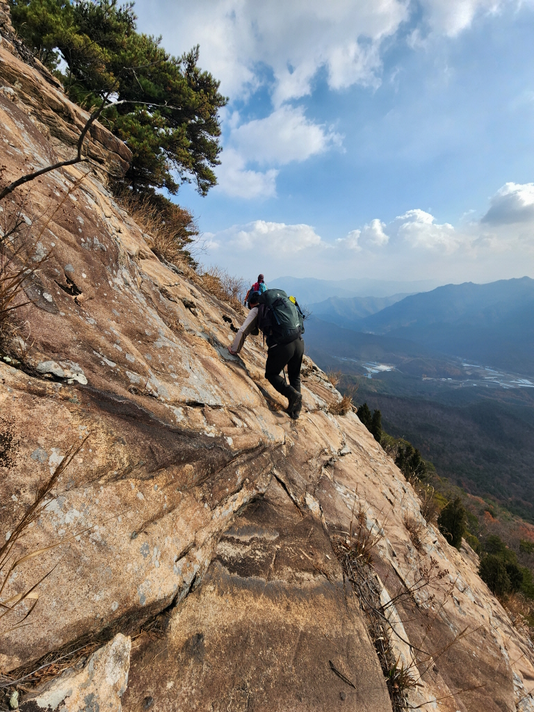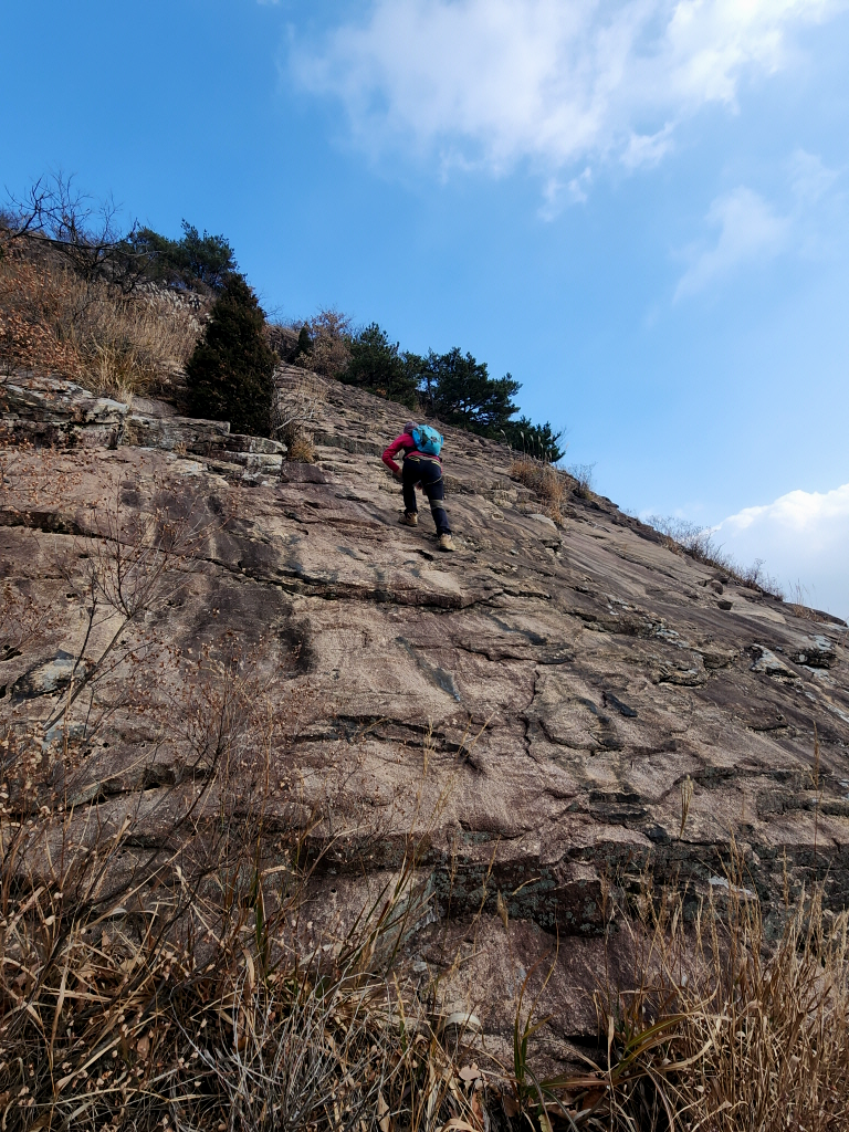 경사각이 상당하지만 바위가 미끄럽지않고 홀더가 있어 오를만 합니다.