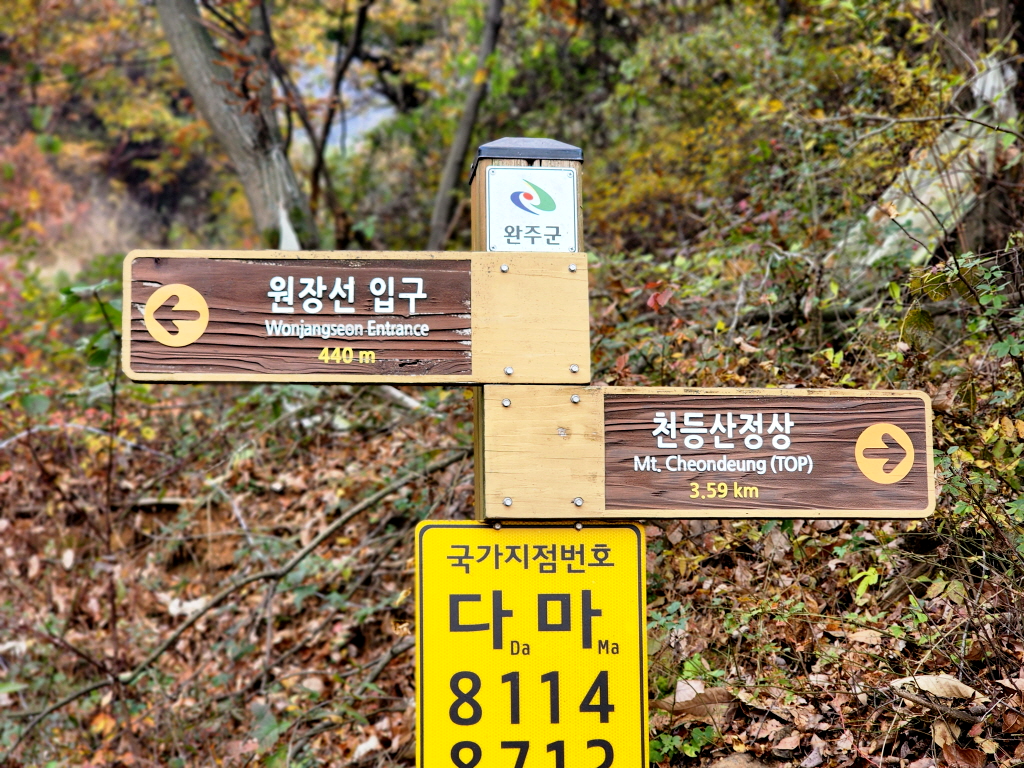 이정목에는 원장선마을에서 천등산정상까지 약 4km지만, 실제 거리는 GPS로 2.8km 기록되었네요
