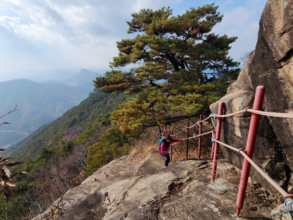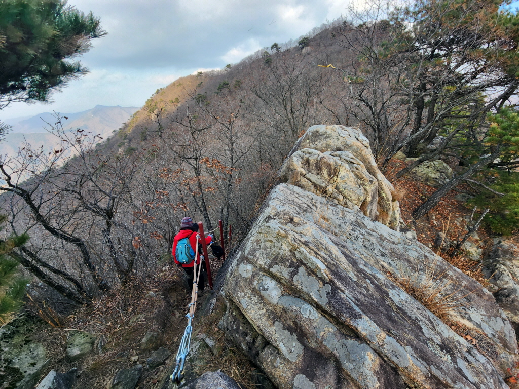 바위를 통과하는 등로에는 이렇게 안전시설이 되어 있습니다.