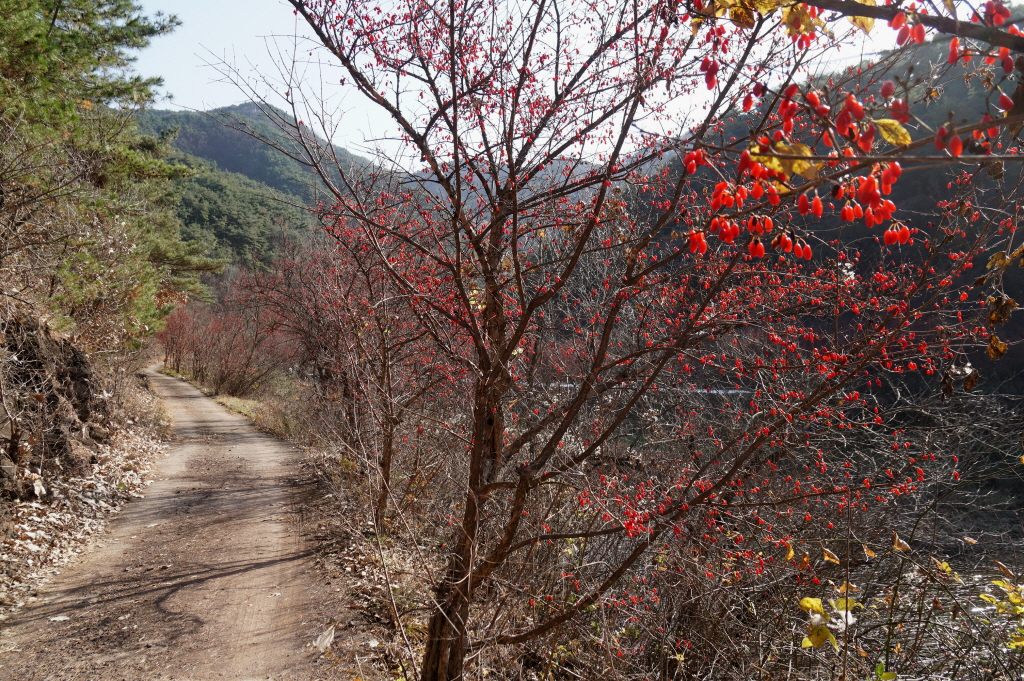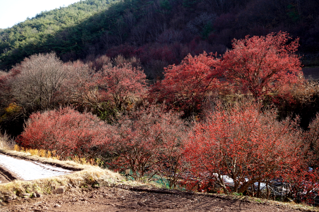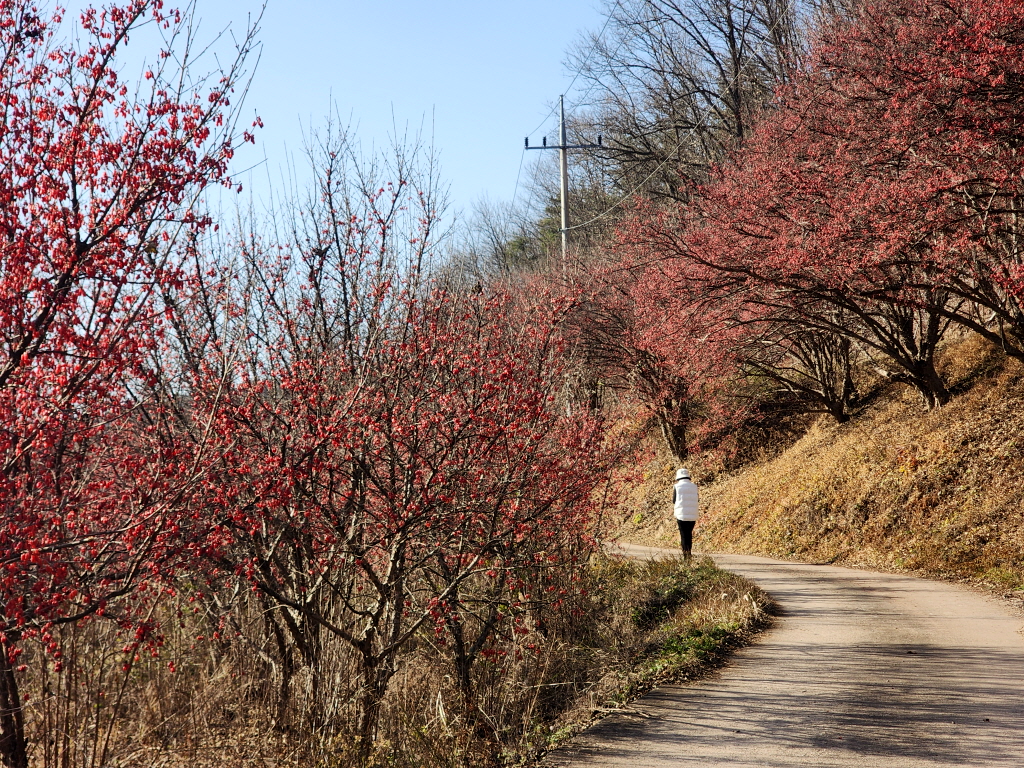 시간나시면 늦가을에 산수유마을을 한번 찾아보세요 붉은 산수유 열매길이 나름 매력 있습니다.