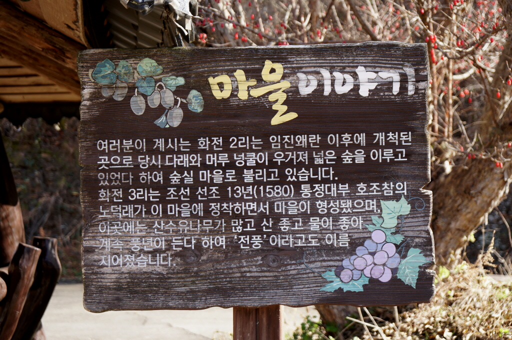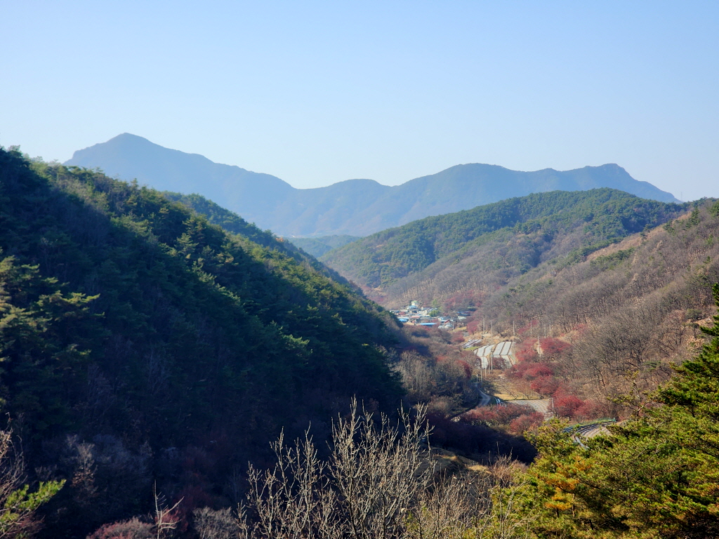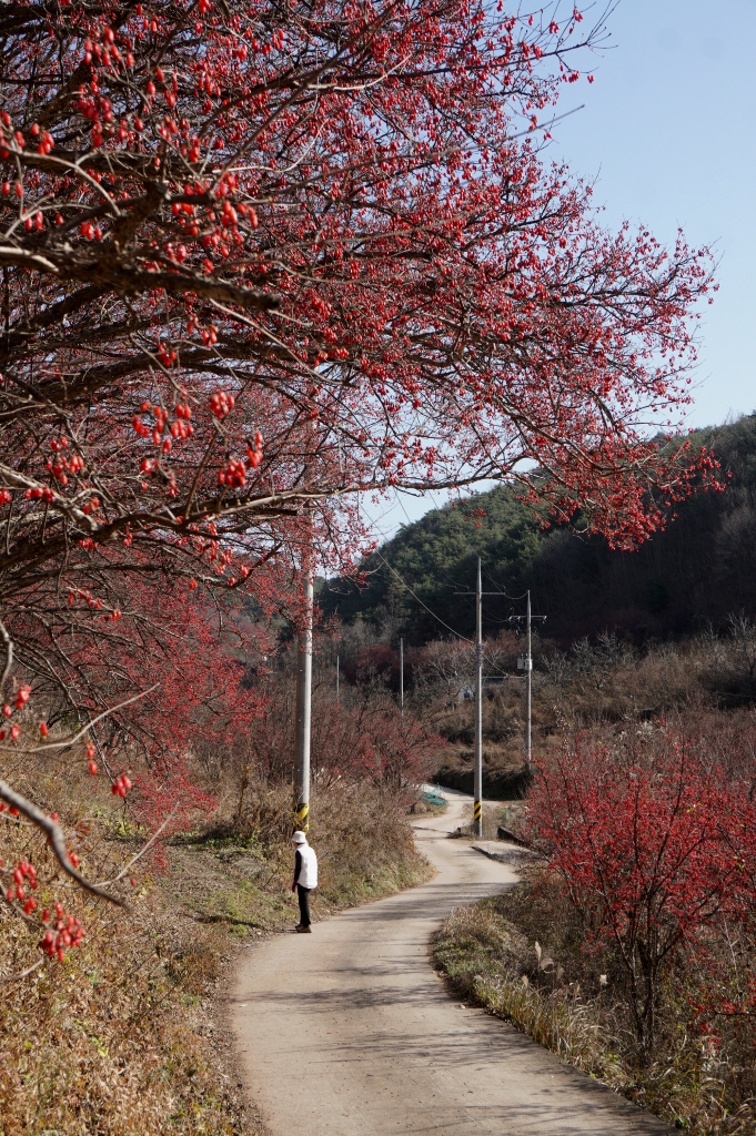 의성군 사곡면 화전1리에 주차하고 걷기를 시작합니다. 빨간 산수유 열매가 마치 붉은 꽃이 활짝 핀듯하네요