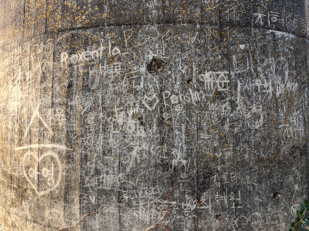 외부 벽면의 수많은 낙서는 근래에 관광객들이 그런듯