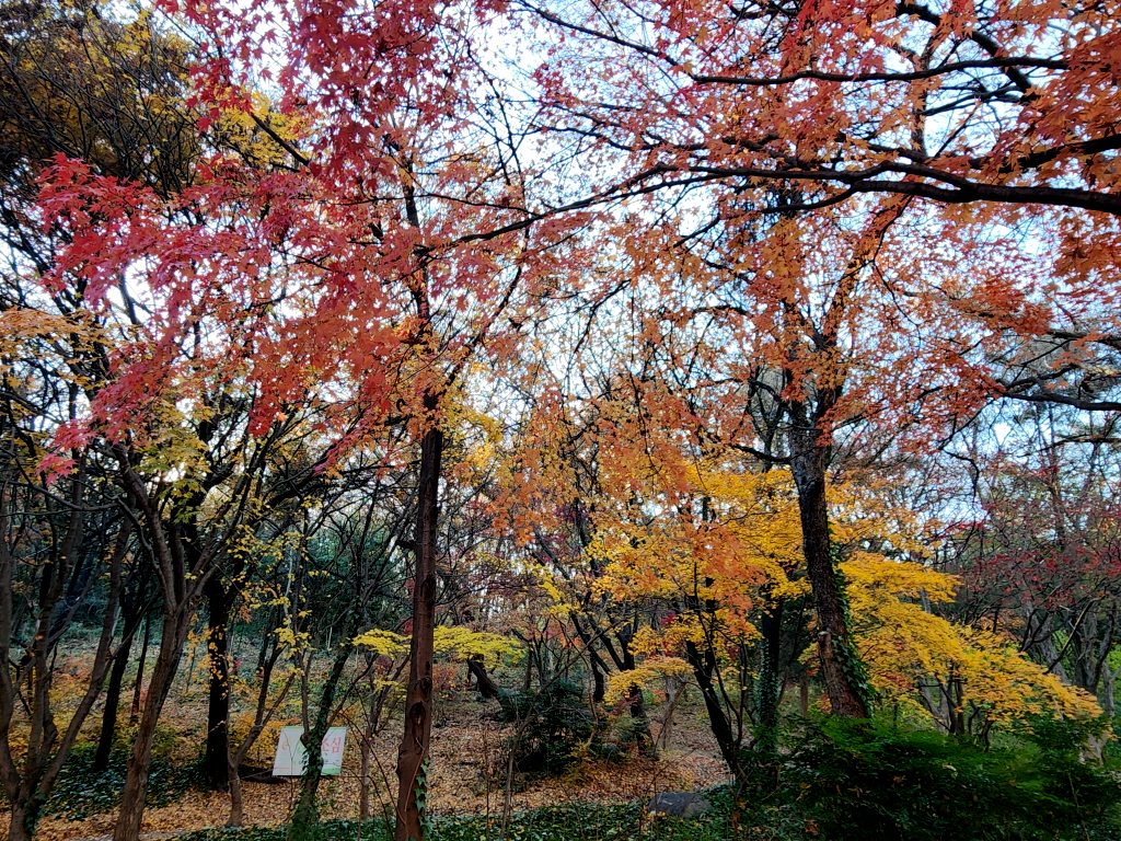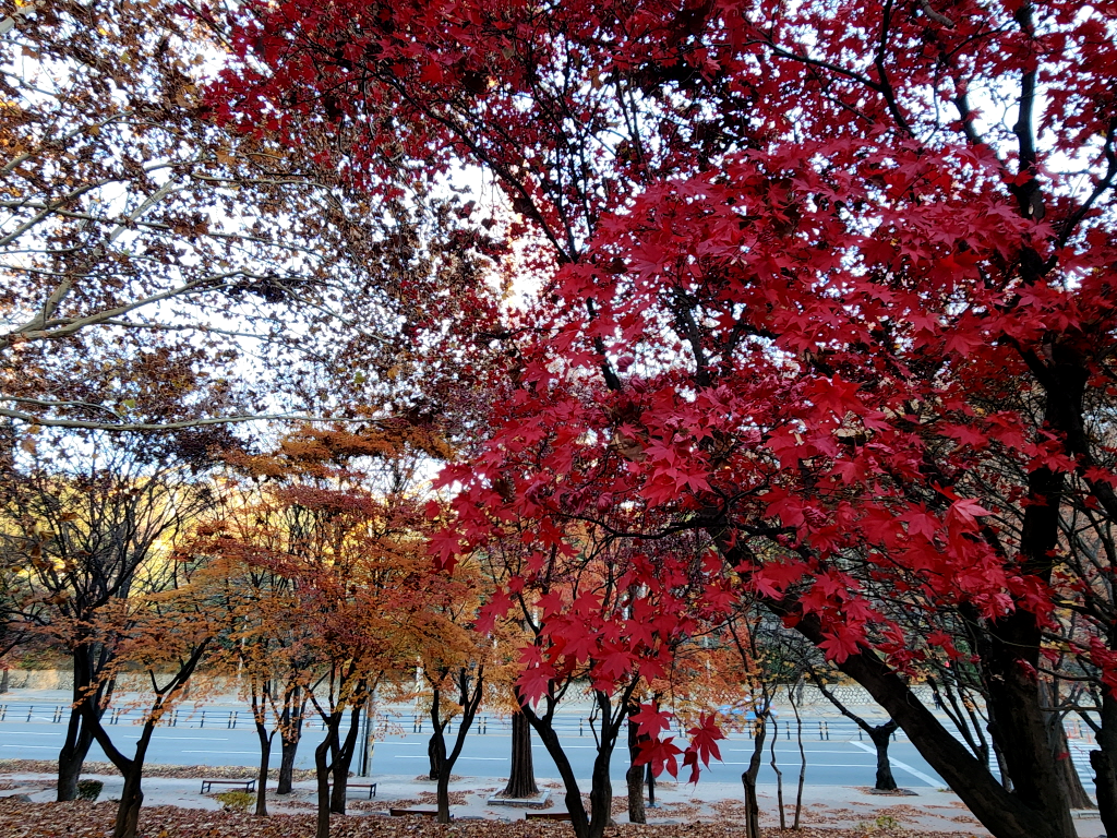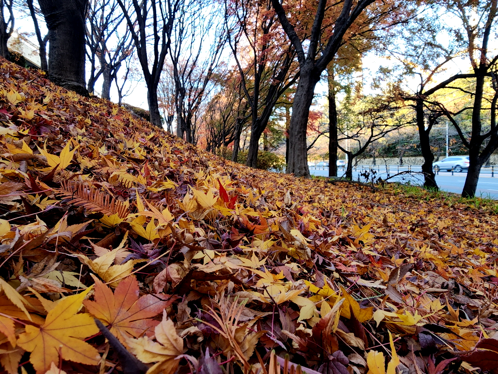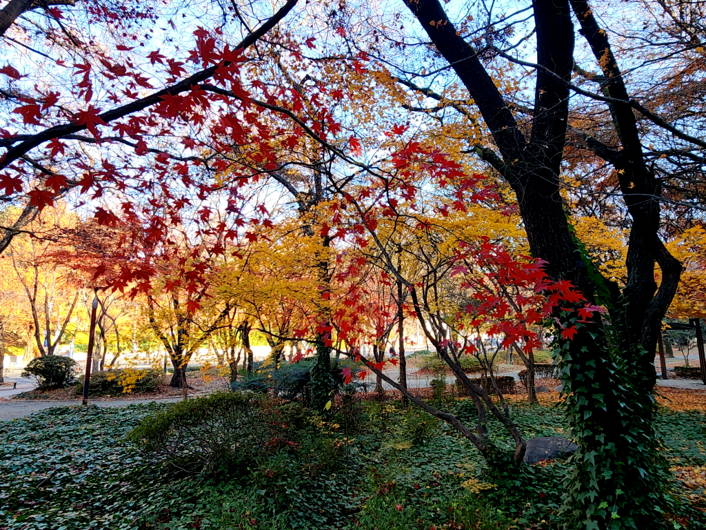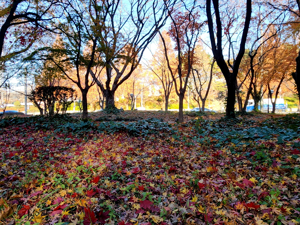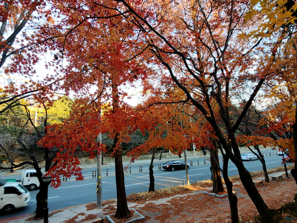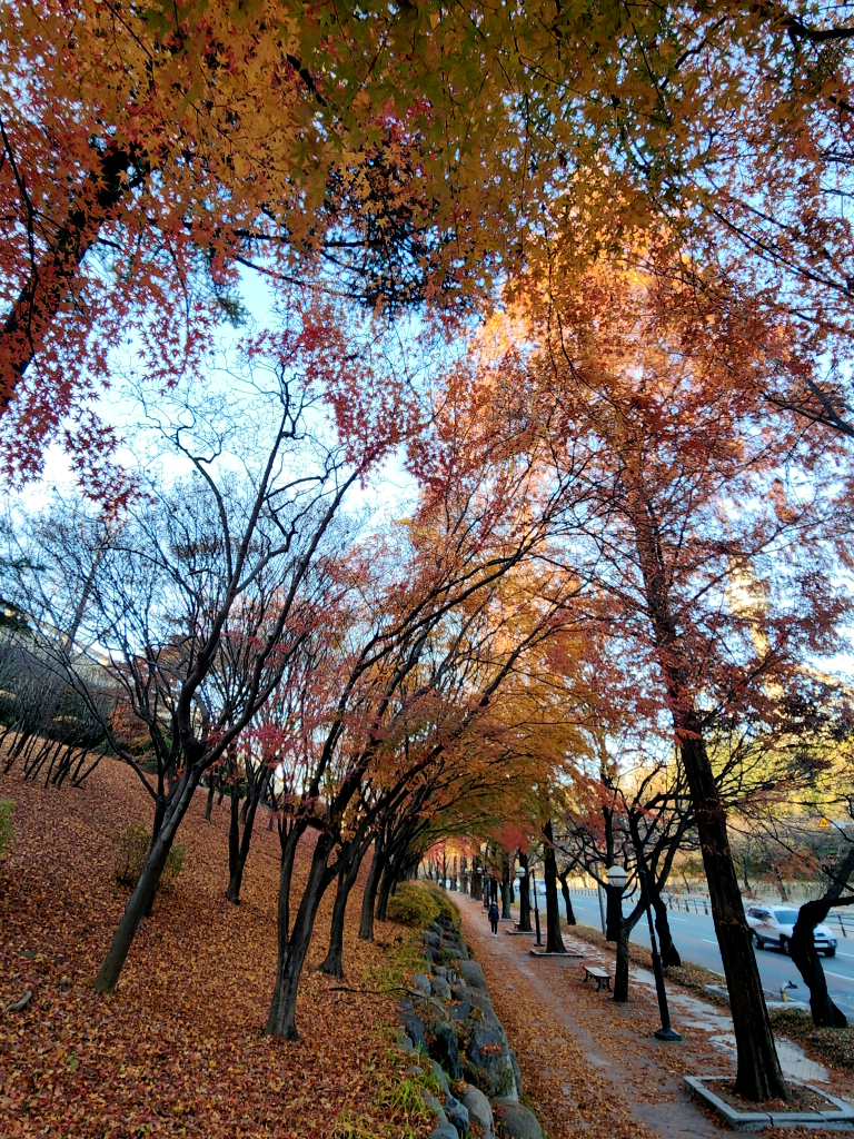 두류공원에 주차를 하는데 두류공원은 아직도 단풍이 온몸을 불태우며 가을의 끝자락을 힘겹게 붙잡고 있네요