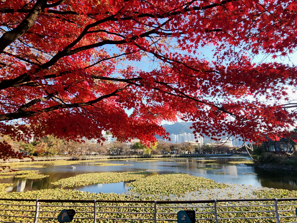 단풍을 보고 그냥 가기는 아쉬워 이발을 하고 두류공원을 한바퀴 돌면서 몇 컷 담아보았습니다.