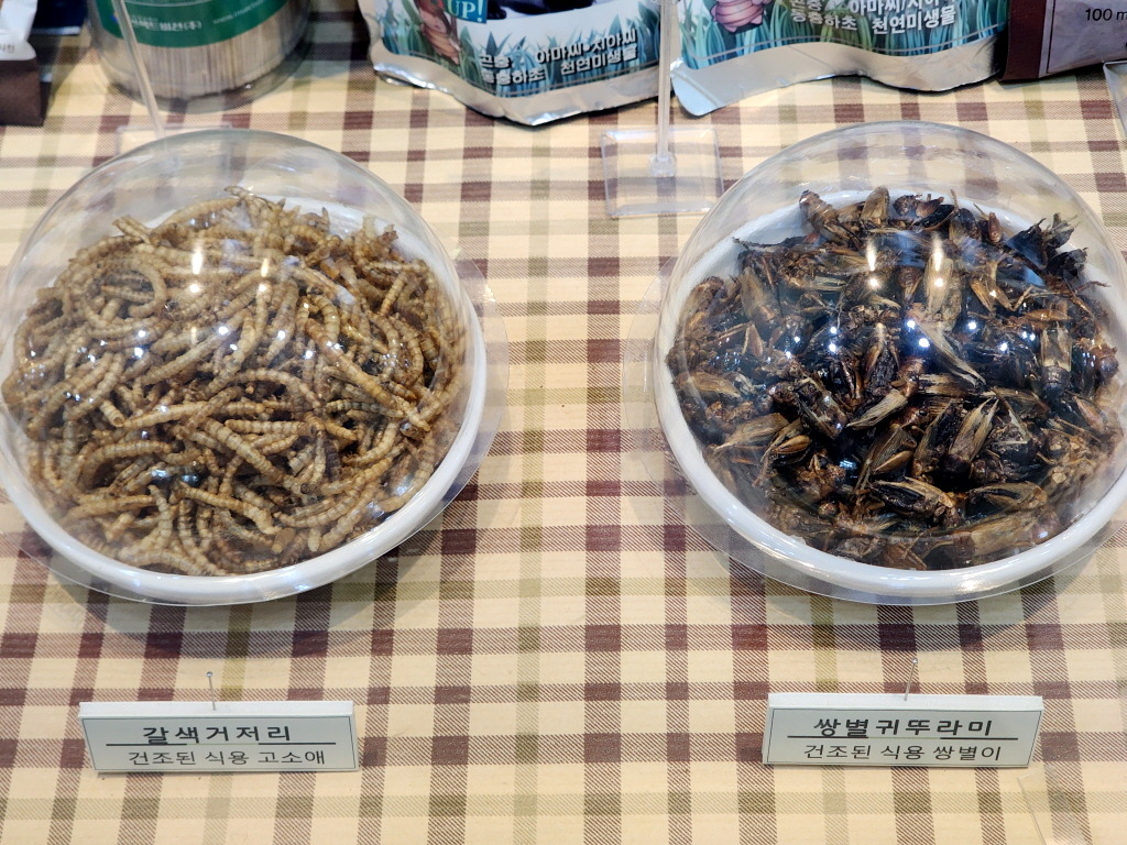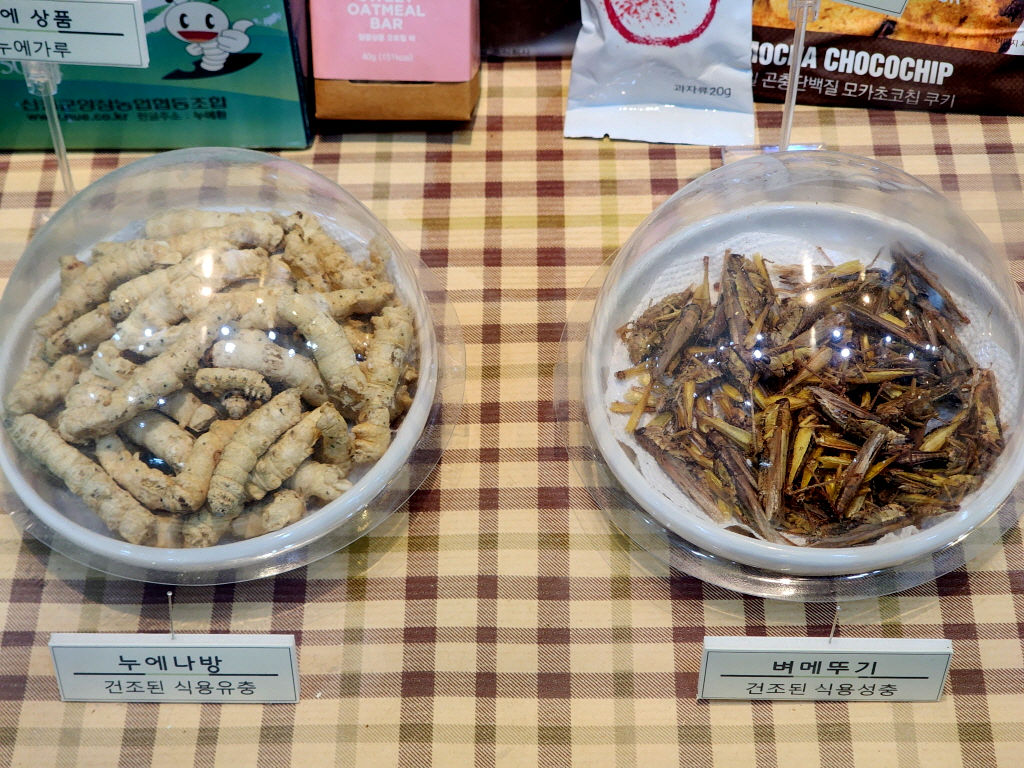 건조된 식용유충 누에나방 & 벼메뚜기