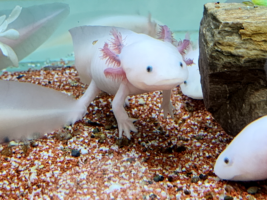 검색해보니 우파루파의 정식명칭은 아홀로틀(Axolotl)로 도롱룡목 점박이도롱뇽과의 양서류라네요