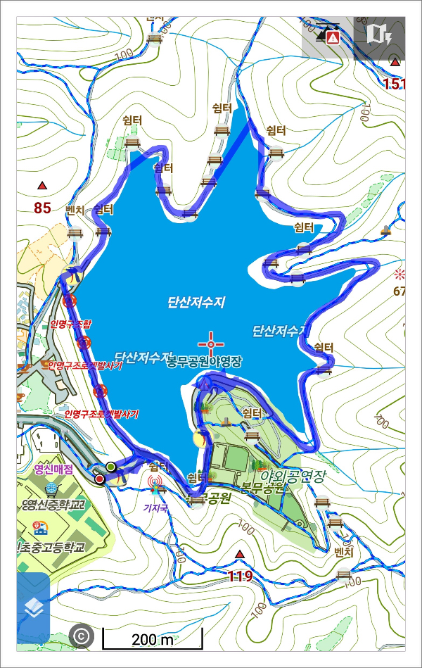 <봉무공원 단산지 한바퀴는 GPS로 3.7km가 기록되었습니다.>