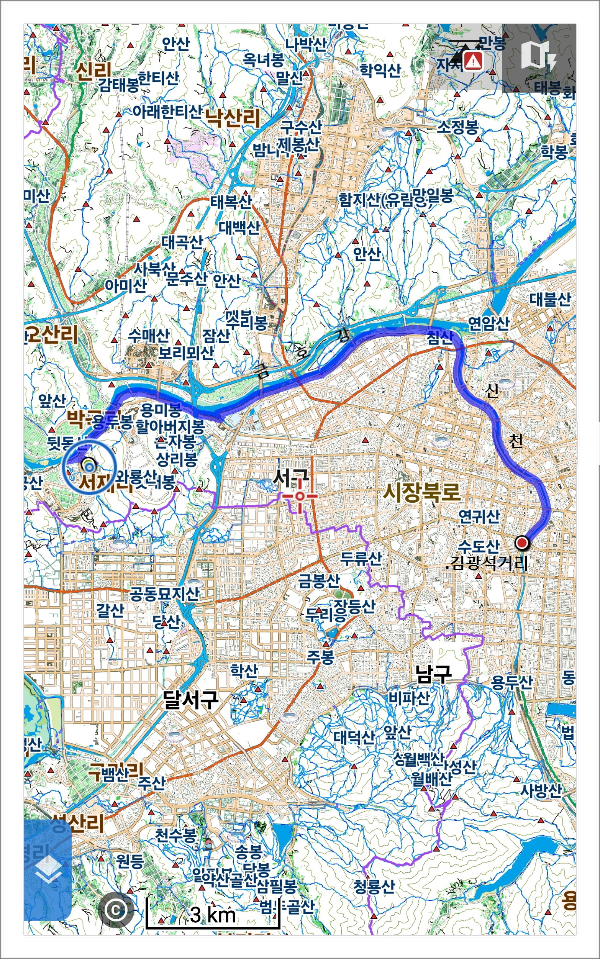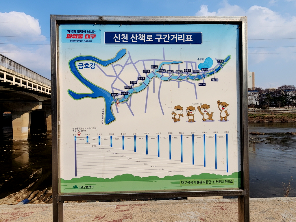 금호강(琴湖江)에서 신천(新川)으로 진입(11.3km, 2시간29분 소요)