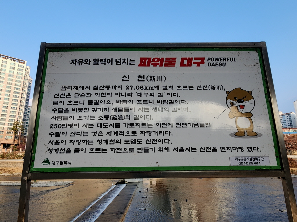 신천(新川)은 대구시 가창면 정대리 비슬산 기슭에서 발원하여 대구 침산동까지 27.06km에 걸쳐 흐르는 하천으로