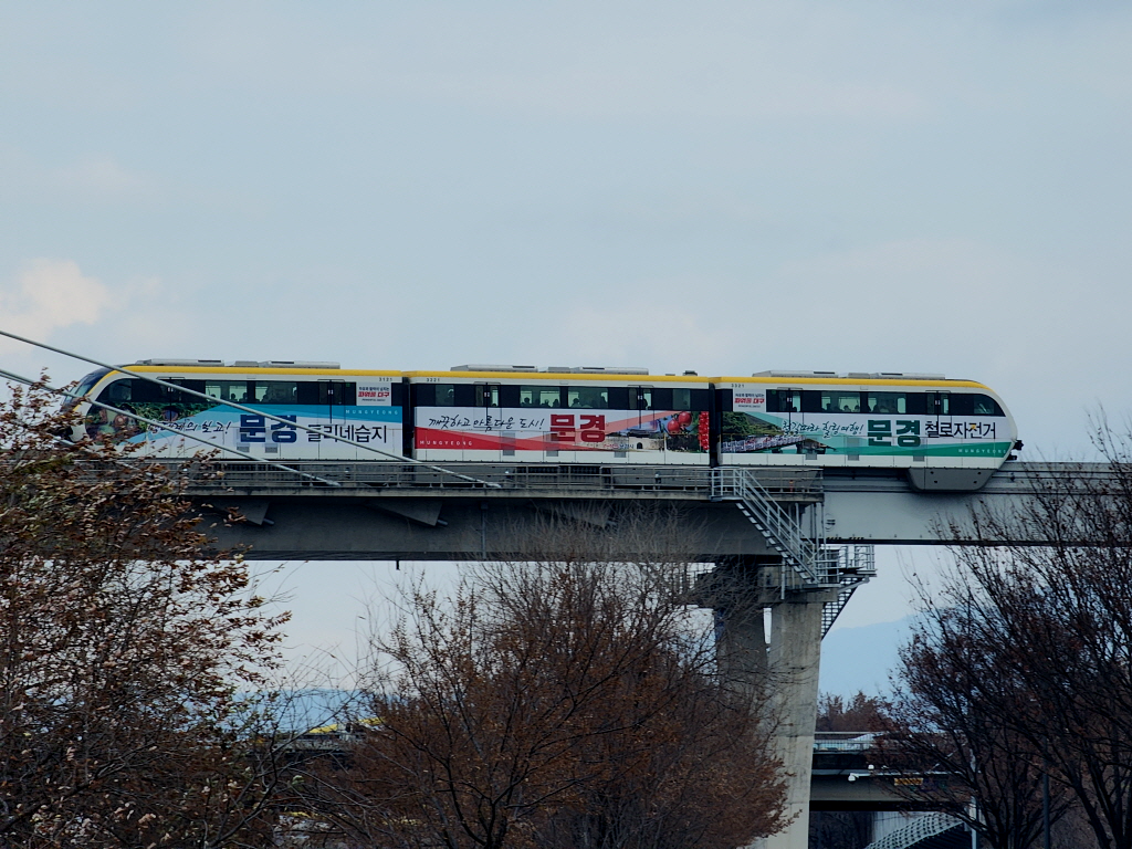 트램 행태와 유사한 지상 경전철 방식으로 운영하고 있습니다.