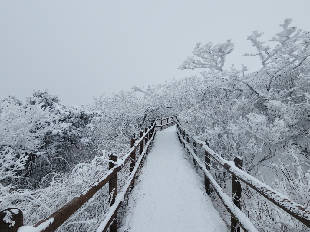 토요일 오후 전국에 비 또는 눈이 내리고 소백산에도 제법 많은 눈이 내린다는 기상예보에