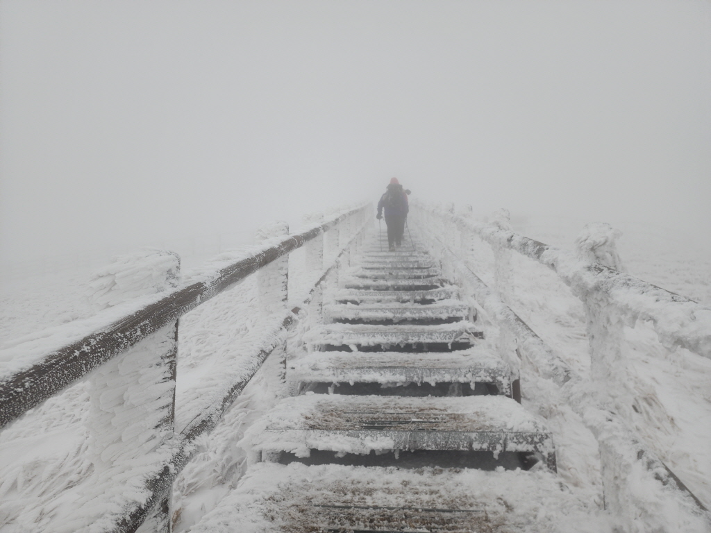 겨울에 비로봉은 그야말로 칼로 살을 에이듯한 칼바람이 불어 단디 준비하고 올라가야 됩니다.