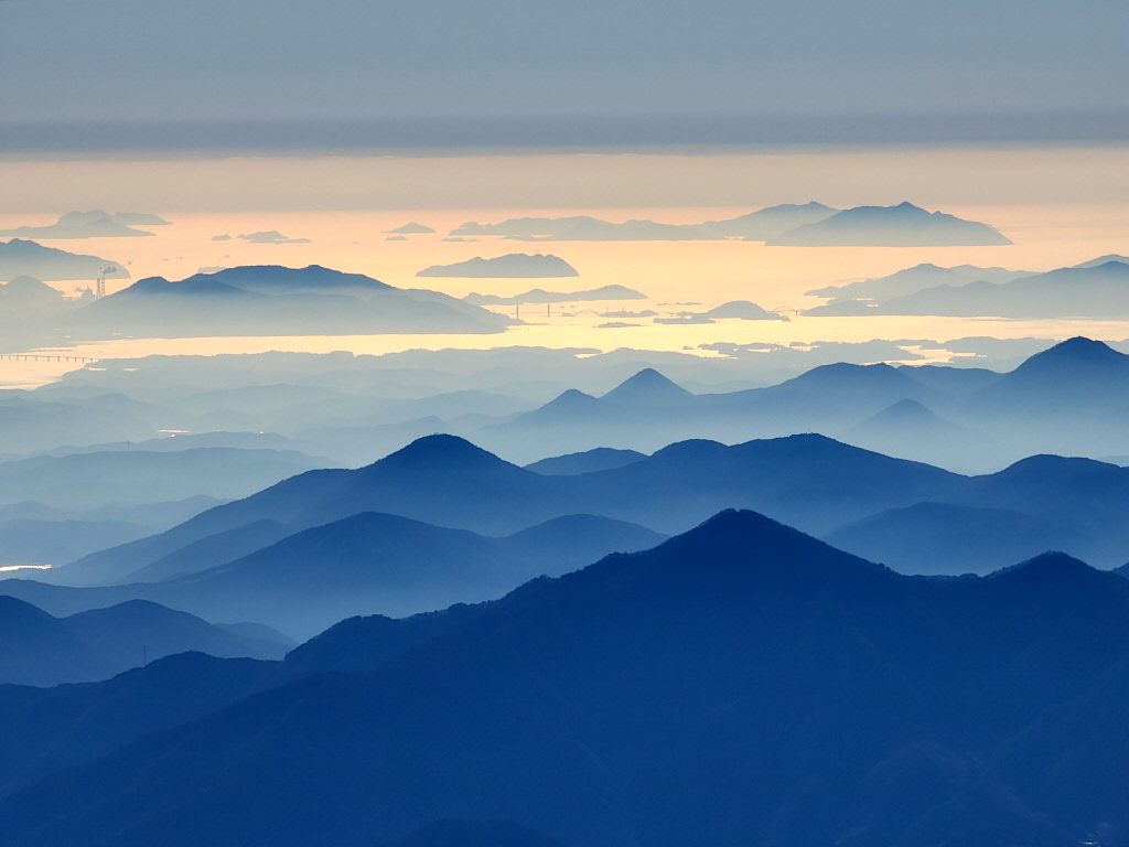 사천 와룡산에서 하동 금오산까지 조망으로 금빛으로 빛나는 곳은 남해바다