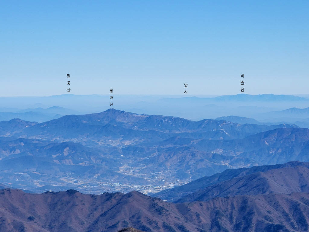 황매산 좌우로 팔공산과 비슬산 그리고 대구의 진산 앞산까지 조망됩니다.