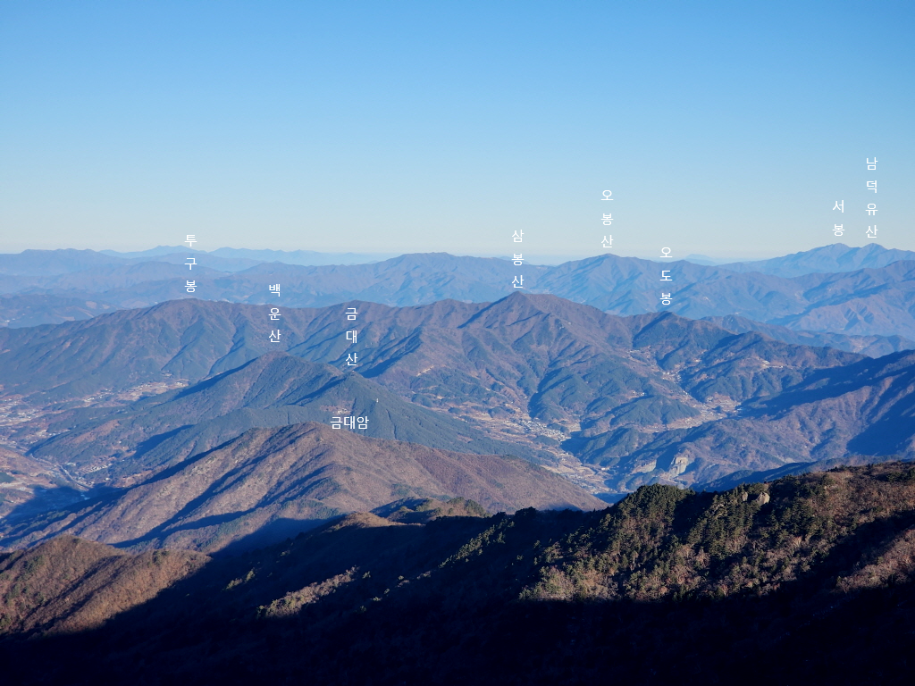 김천 대덕산, 초점산, 수도산, 합천 가야산, 거창 감악산 조망