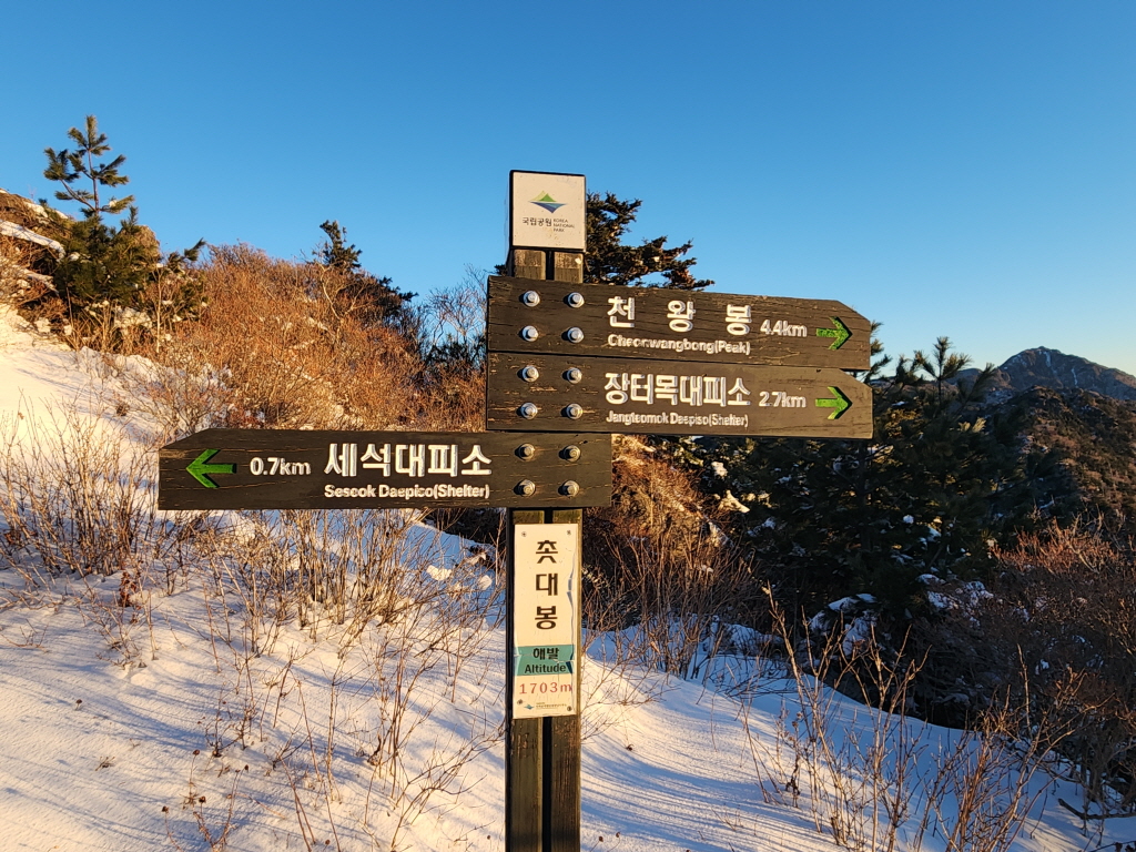 특히 겨울에는 바람불고 추워서 천왕봉에 오래 머물지 못하고 금방 내려가야 되는데