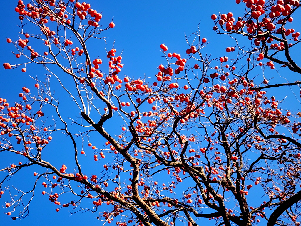 감이 익어서 뚝뚝 떨어지지만 딸 생각을 않네요 밑에서 입벌리고 있으면 떨어지려나?ㅎ