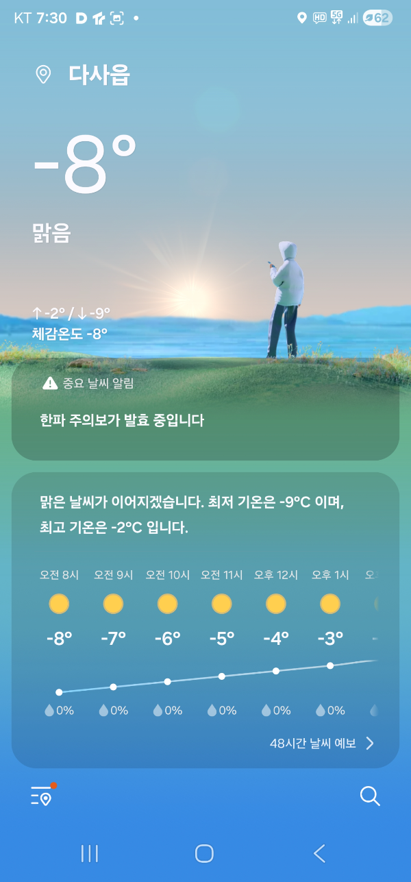 새벽 05:40경 집을 나서는데 영하 7도네요