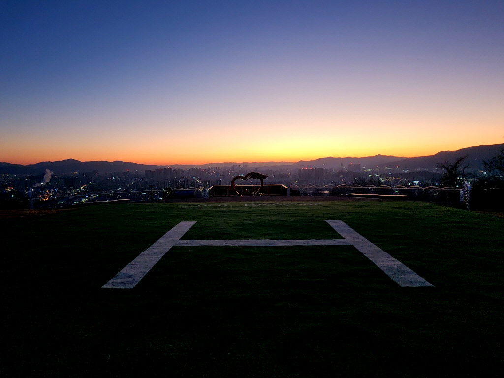 헬기장 앞에서 본 대구시 야경으로 여명이 밝아오고 있습니다.