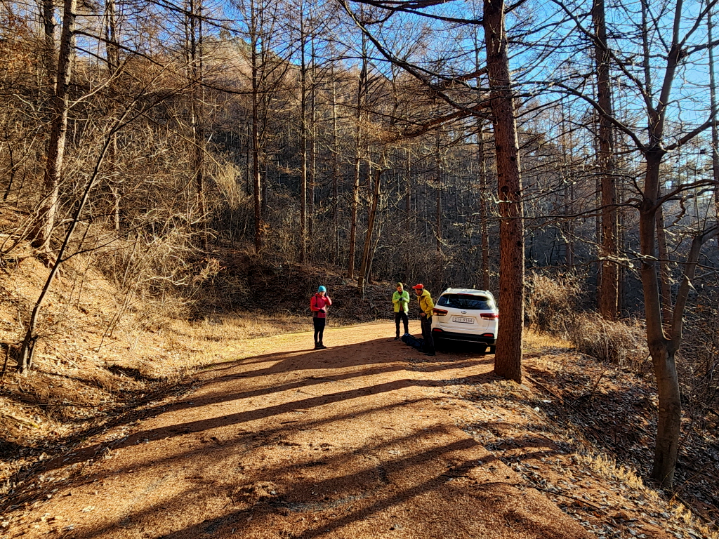 15:55경 대구 달성군 옥포면 반송리, 반송임도 끝부분에 주차하고 비슬산 천왕봉으로 올라갑니다.