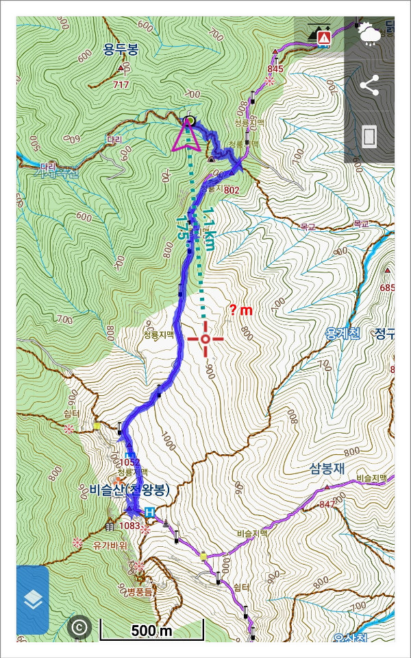 ◈ 산행코스 : 반송임도에서 비슬산 천왕봉 왕복