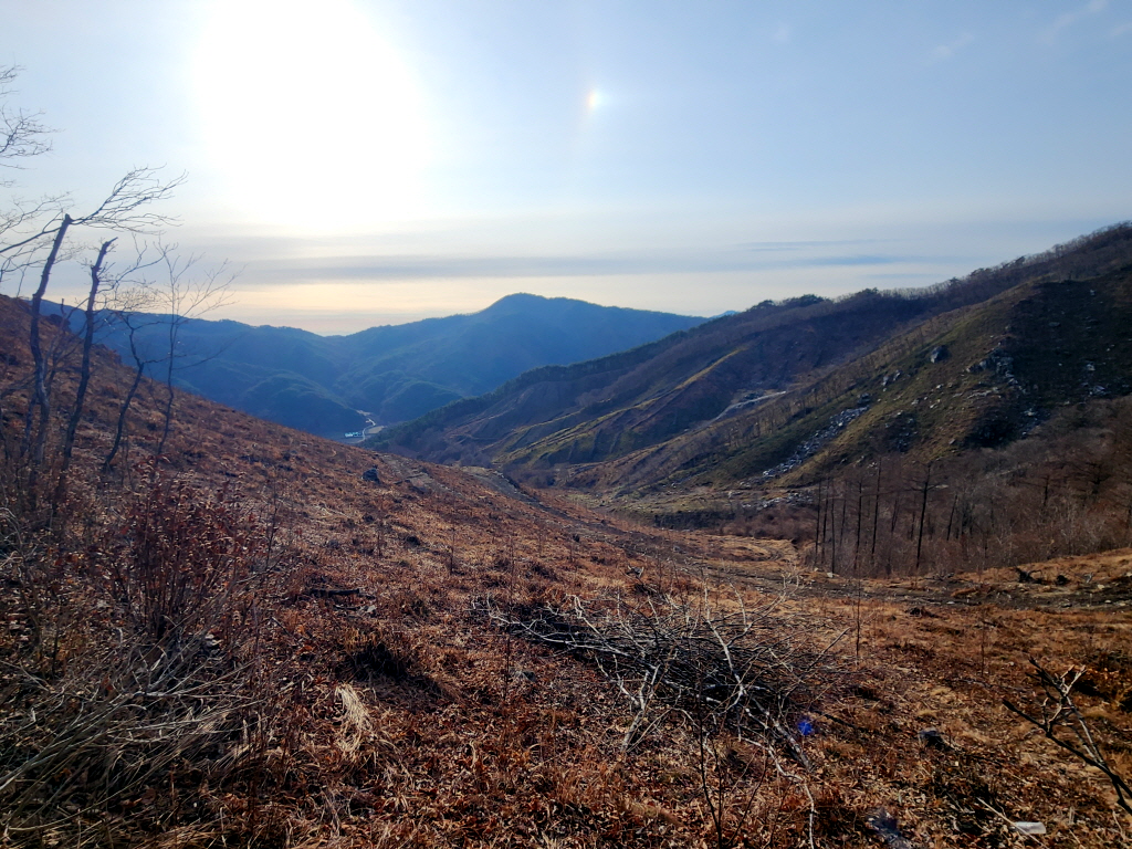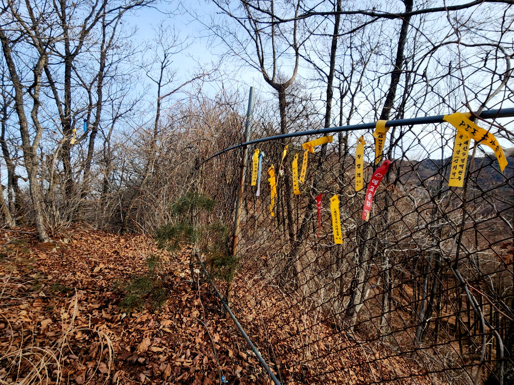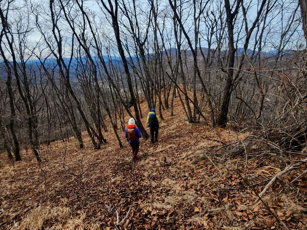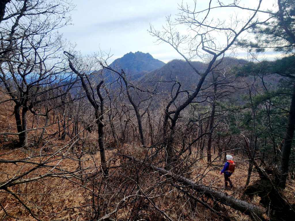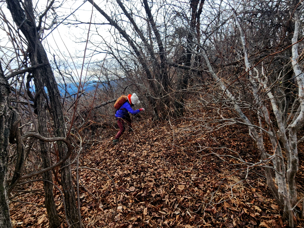 2년전 겨울 폭설이 얼어붙어 나무가 엄청나게 쓰러졌는데 여기도 쓰러진 나무로 인해 등로가 개판이 되었네요