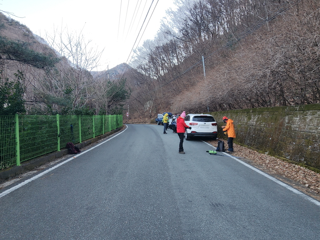08:10경 신불산자연휴양림 500m전방 도로변에 주차하고
