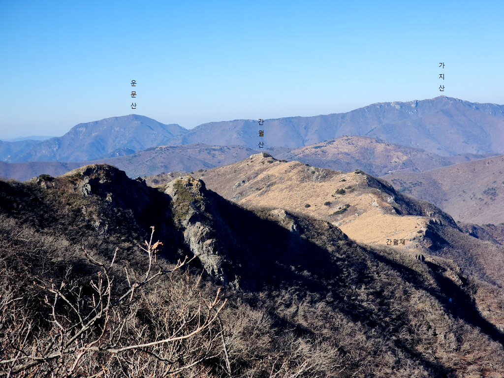 신불산(1,159m), 영축산(1,081m), 간월산(1,069m), 고헌산(1,034m) 일곱 산입니다.