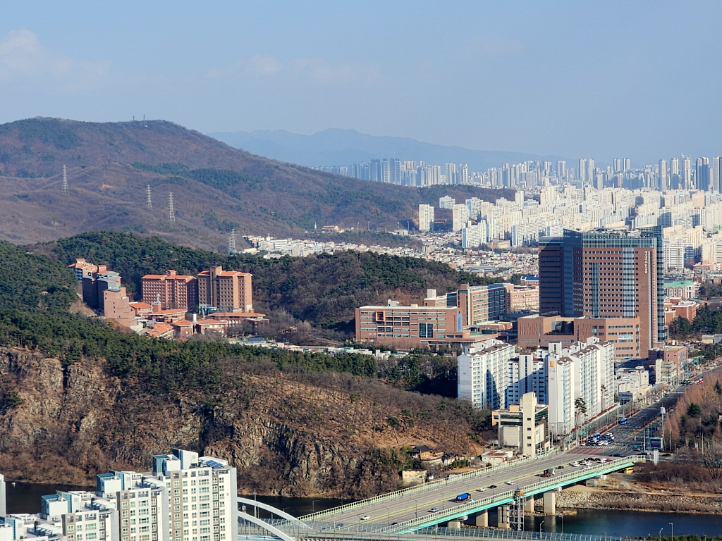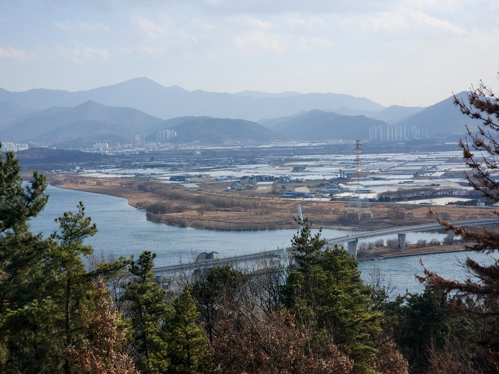 역시 궁산과 와룡산이 보이고 바로아래 달성군 다사읍 죽곡리가, 강창교 건너에 대구시 달서구 성서지역이 조망됩니다.