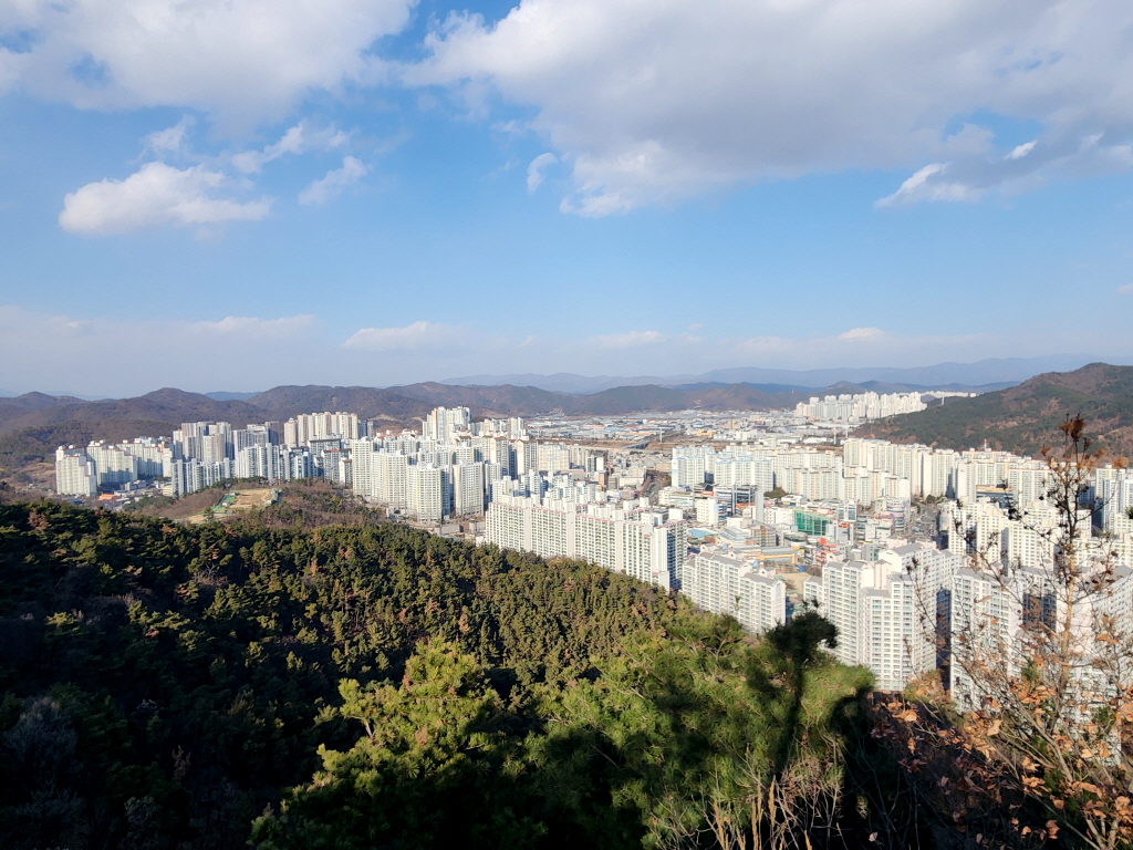 조망이 트이고 울 집 앞산 궁산과 뒷산 와룡산이 보입니다.