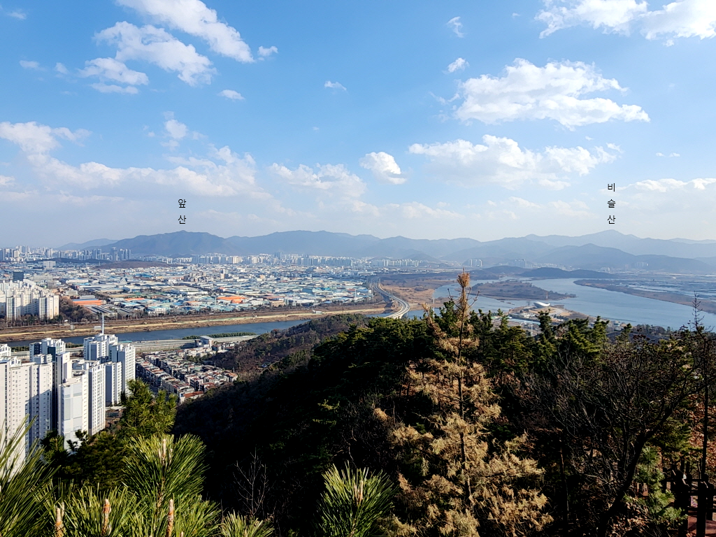 금호강이 낙동강에 합류되는 두물머리와 앞산에서 비슬산까지 종주능선도 조망되고