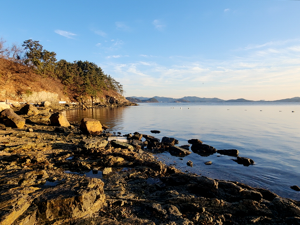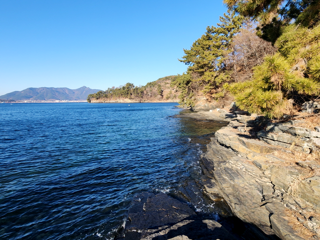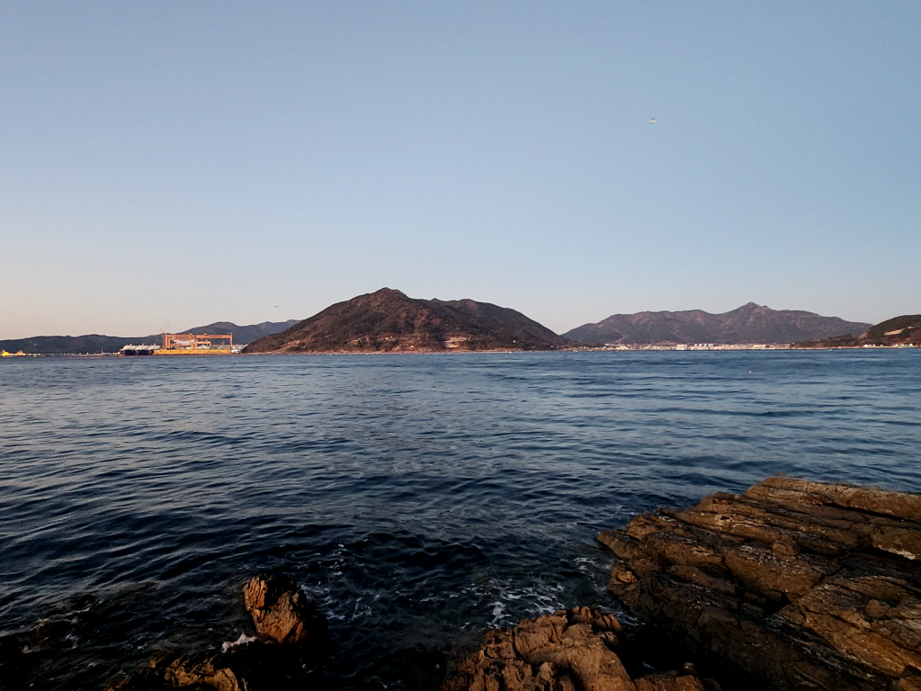 길이막혀 더 이상 진행할수 없는 곳에서 거제 가조도 보이고