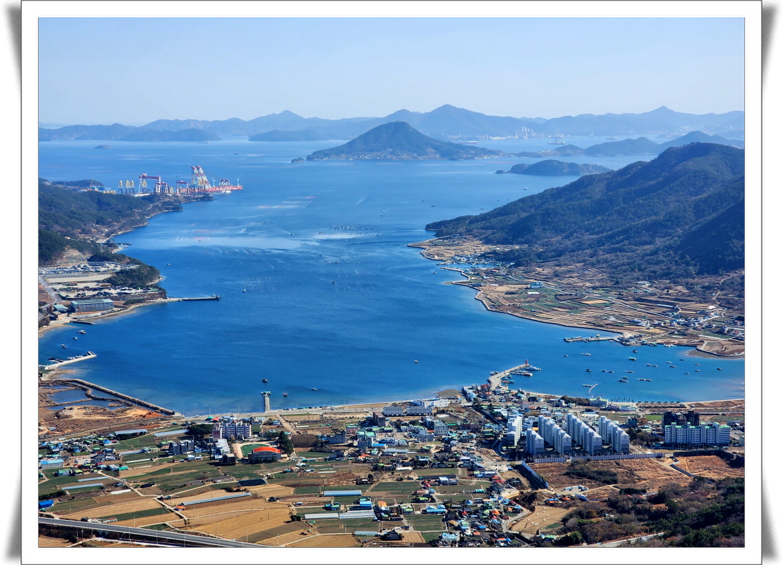 <2023년 12월 거류산 산행중에 거류면과 당동만을 내려다 보고 찍은 사진으로