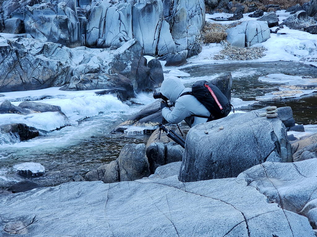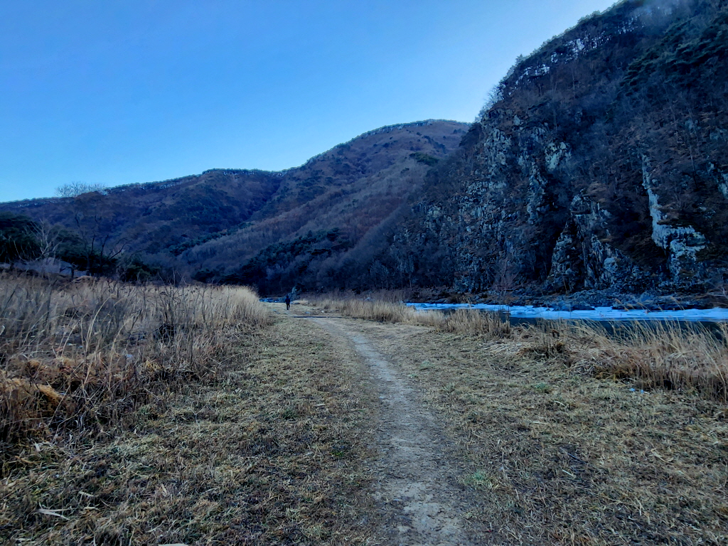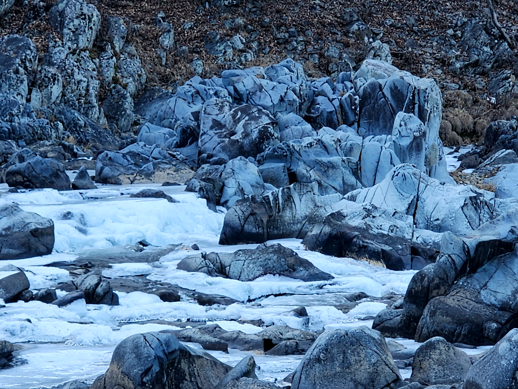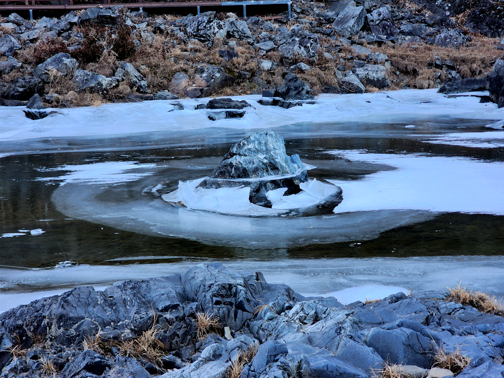 백석탄이 '하얀돌이 반짝거리는 여울'이라는 뜻이라는데 해질무렵이고 물이 얼어서 그런지 그렇게 하얗게 보이지는 않네요