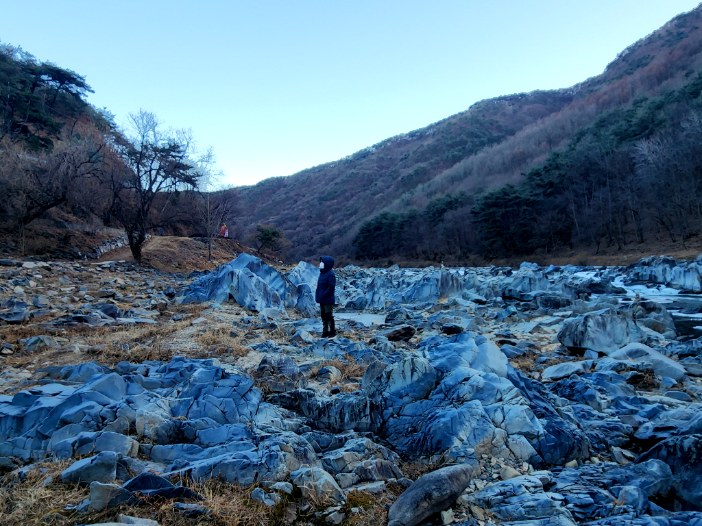 검색해보니 계곡따라 형성된 암벽(백석탄)은 수천만 년 동안 침식된 석회암 지형으로 햇살에 따라 물빛이 변하며