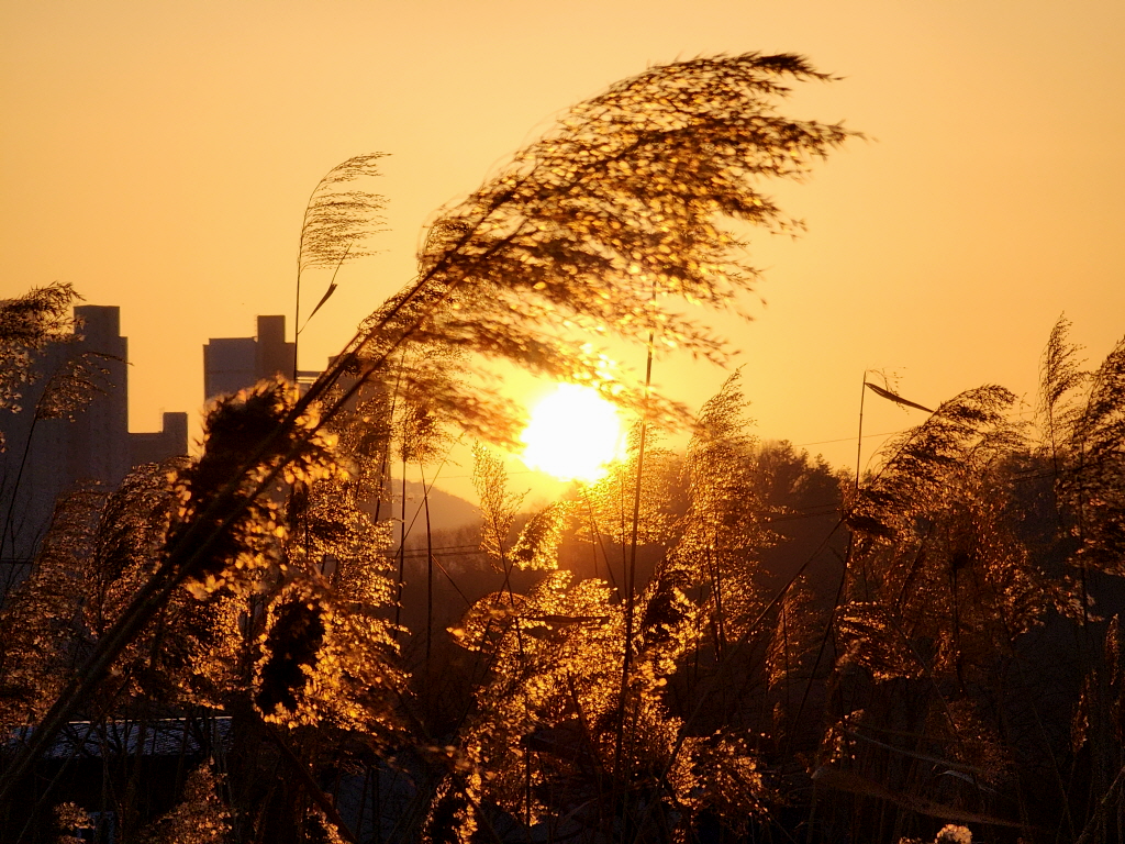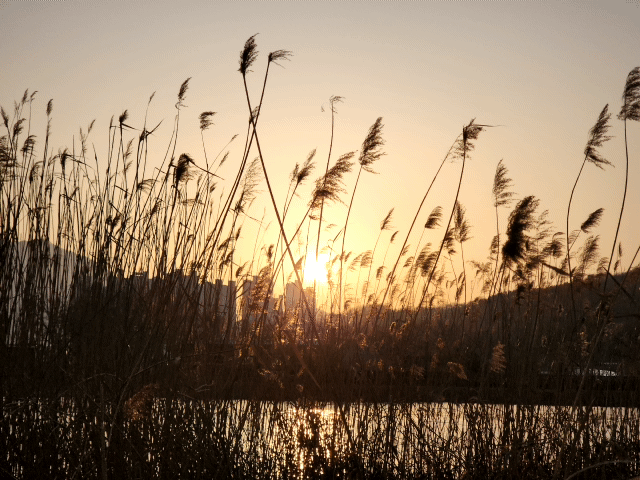 노을빛을 받아 황금빛으로 반짝이는 윤슬