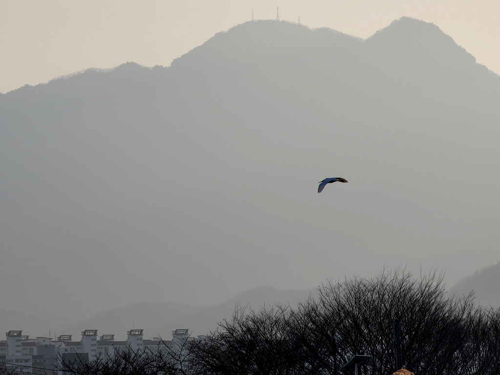 샛강 너머로 보이는 구미 금오산