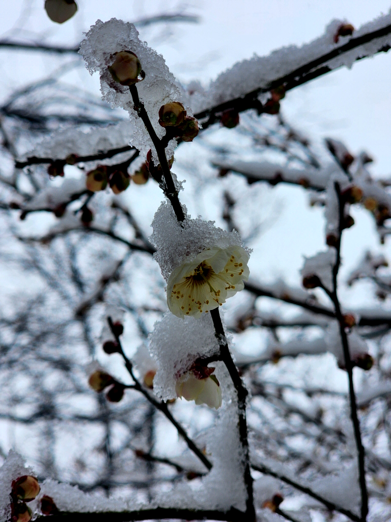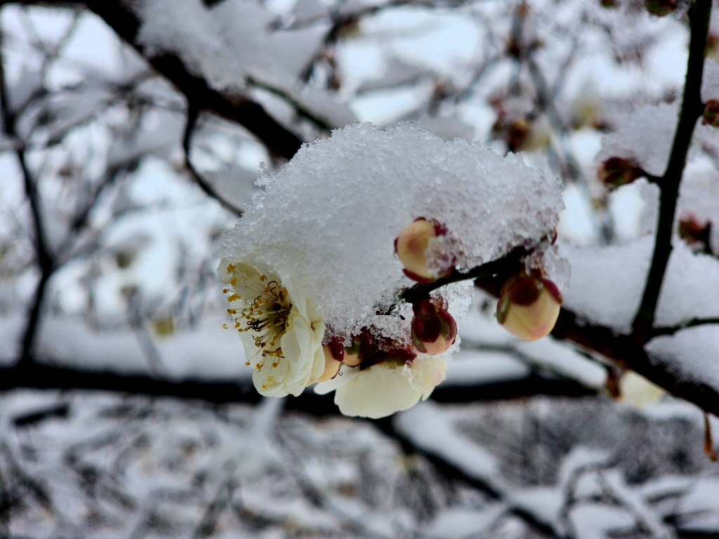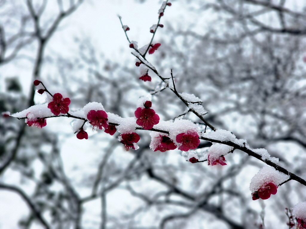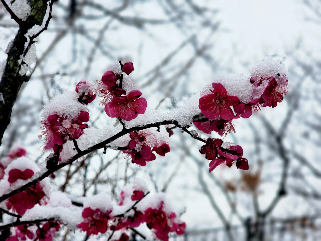 눈 맞은 홍매화