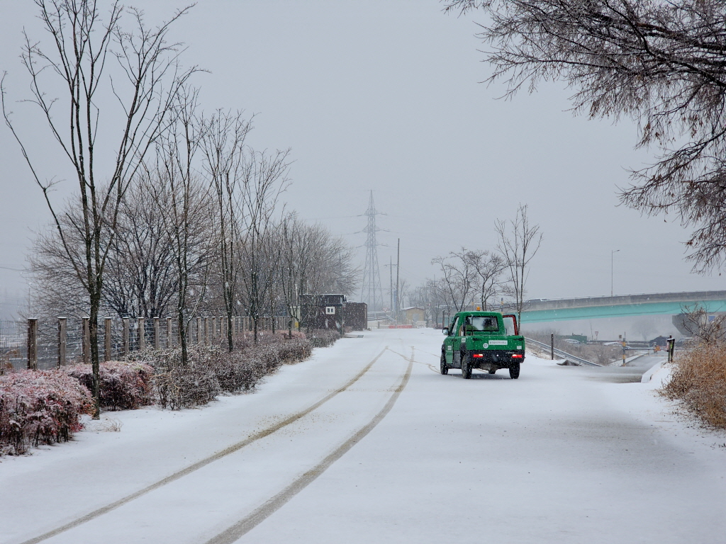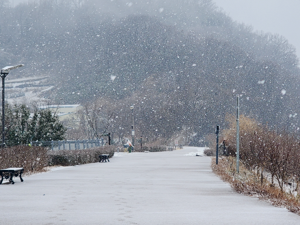 기온이 높아 눈이 내리자마자 녹아버려 내리는거에 비해 쌓이지는 않네요