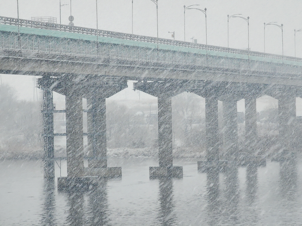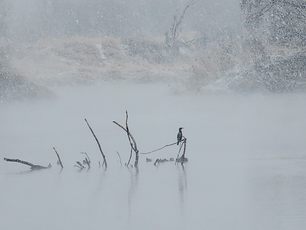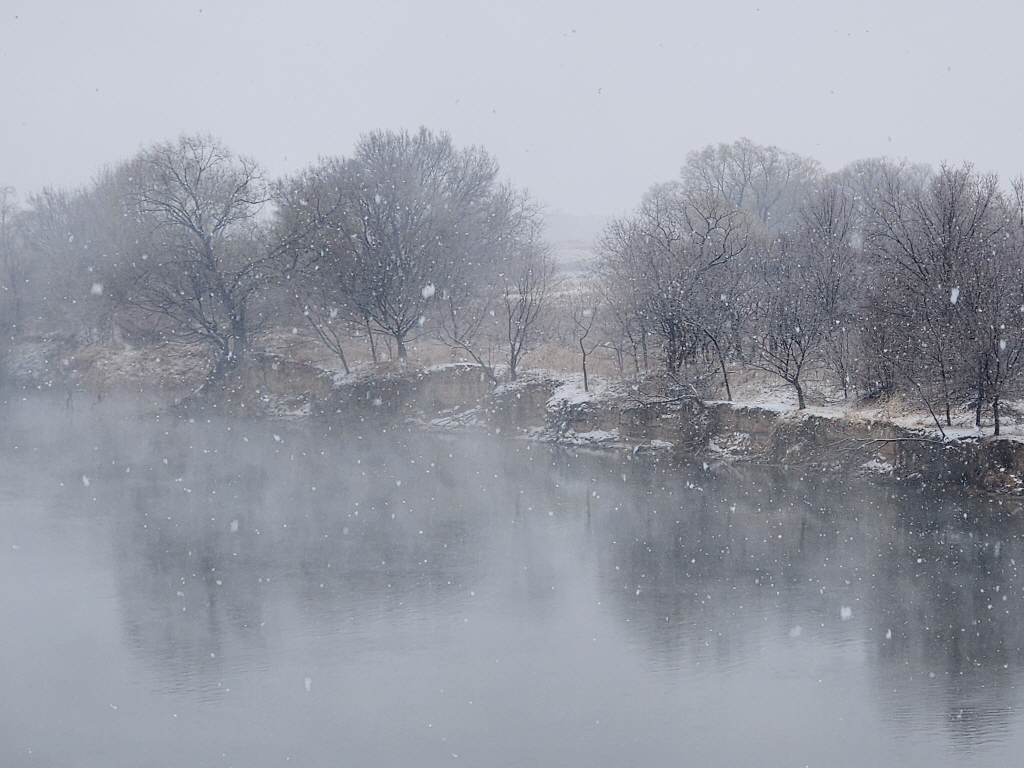 눈이 펑펑 내리는데다 물안개가 올라오고 있어 분위기 쥑입니다.ㅎ