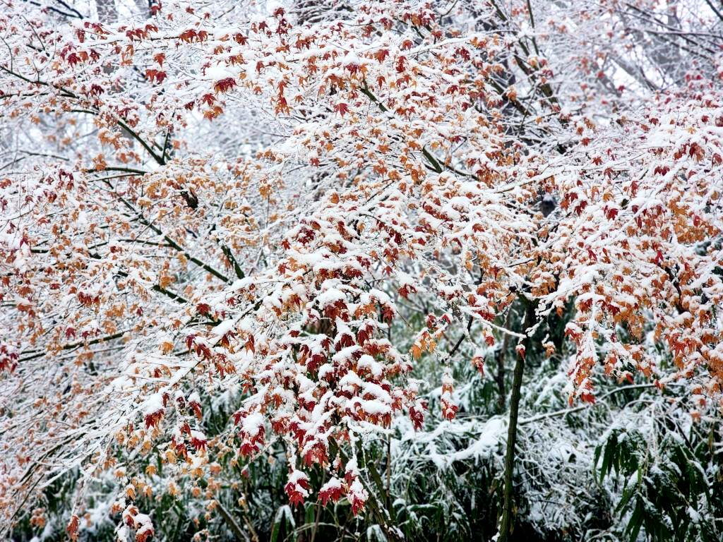 눈을 뒤집어 쓴 홍매화는 처음 봅니다.