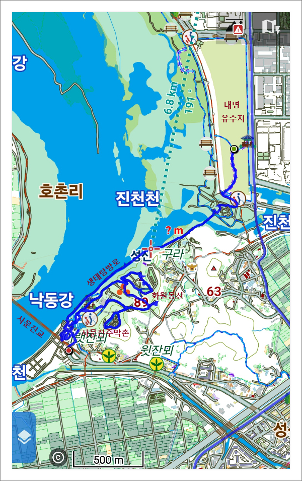 달성습지 생태학습관과 사문진주막촌을 이어주는 낙동강 생태탐방로