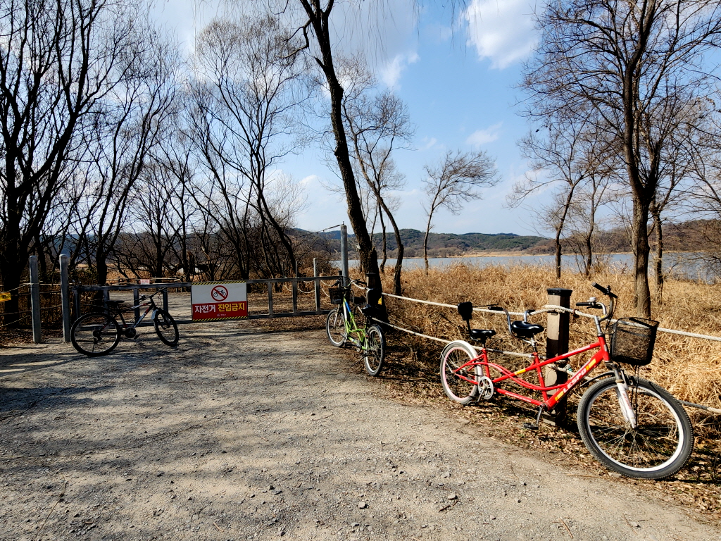 자전거는 따오기 복원센터에서 우리가 나온쪽으로 더 이상 들어가지 못합니다.