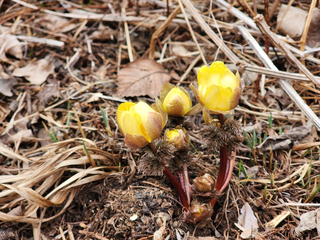 일찍 핀 복수초들이 추위에 쪼그라들어 시들시들