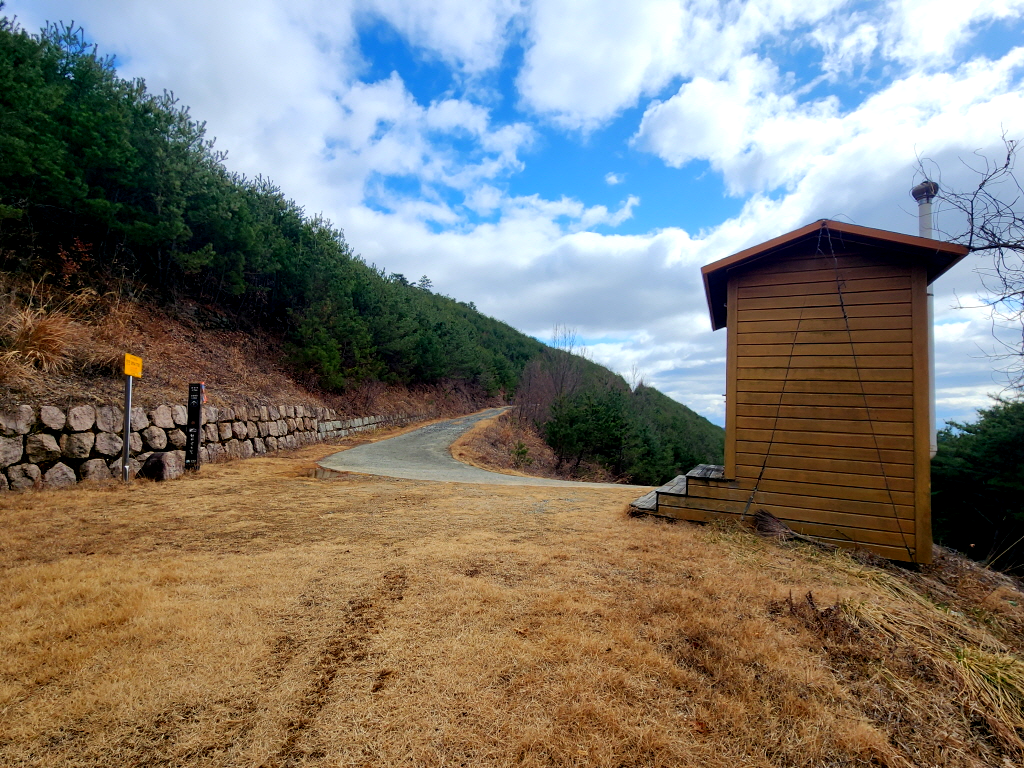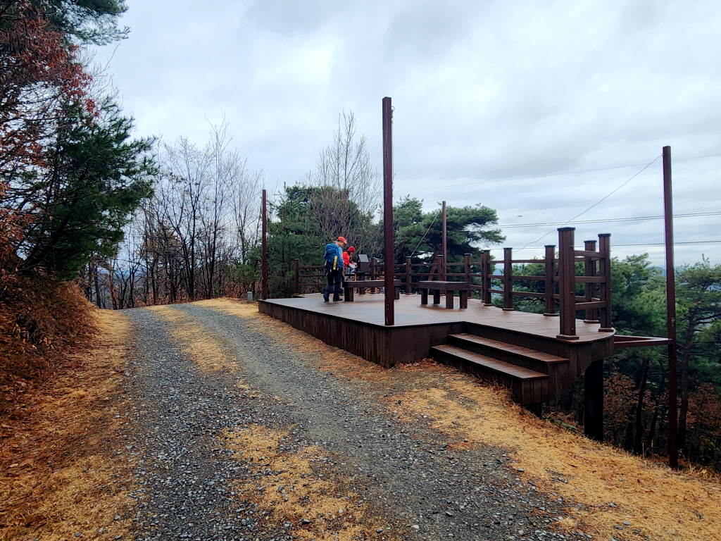 구불구불한 임도를 한참동안 올라오면 전망쉼터가 나오는데