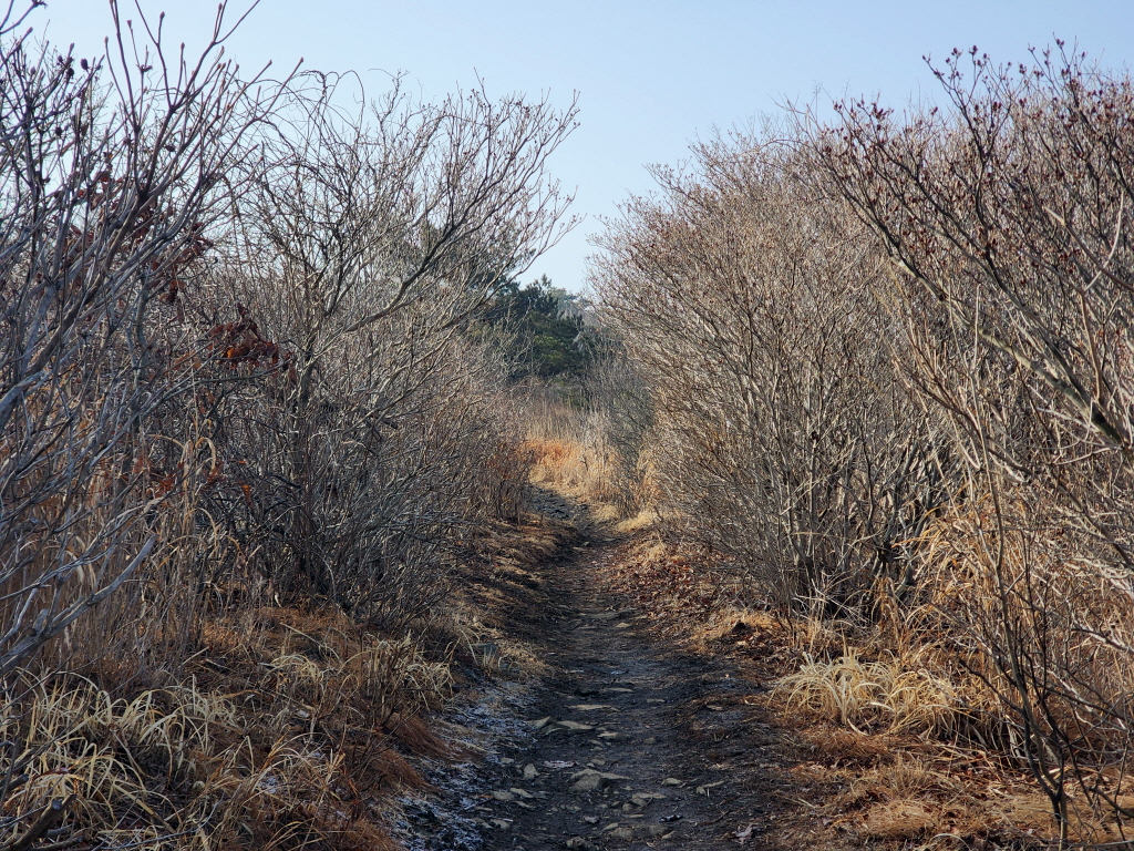 정상이 가까워지자 눈도 보이고 등로도 얼어있고