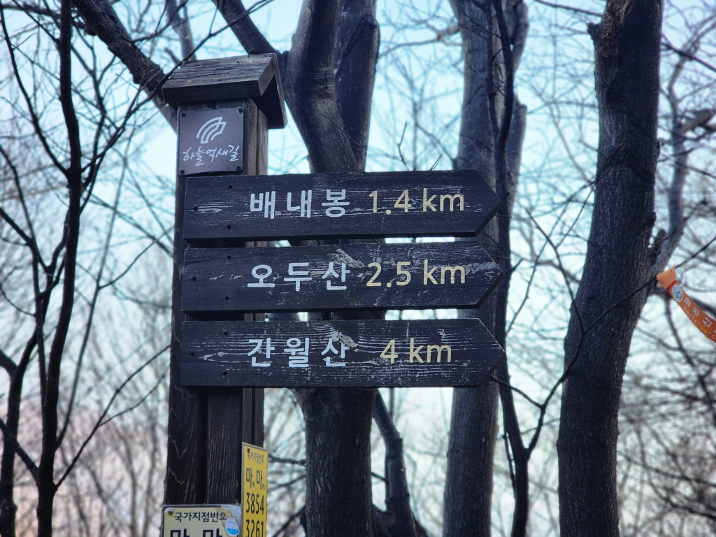 배내고개에서 배내봉까지 1.4km, 간월산까지 4km