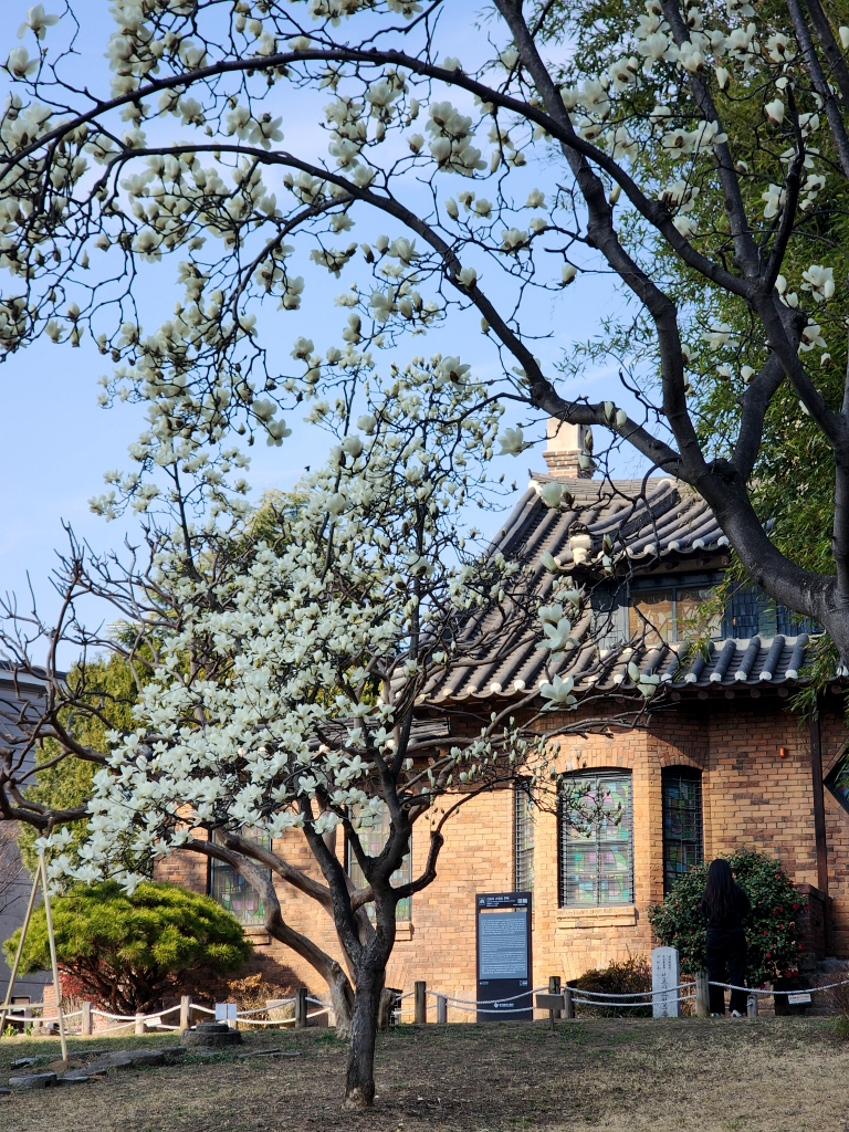 그래서 청라언덕에 하얀 목련이 필 때면 젊은 연인들이 줄서서 인증샷을 찍는데 아주 가끔은 연세드신 분도 보이고