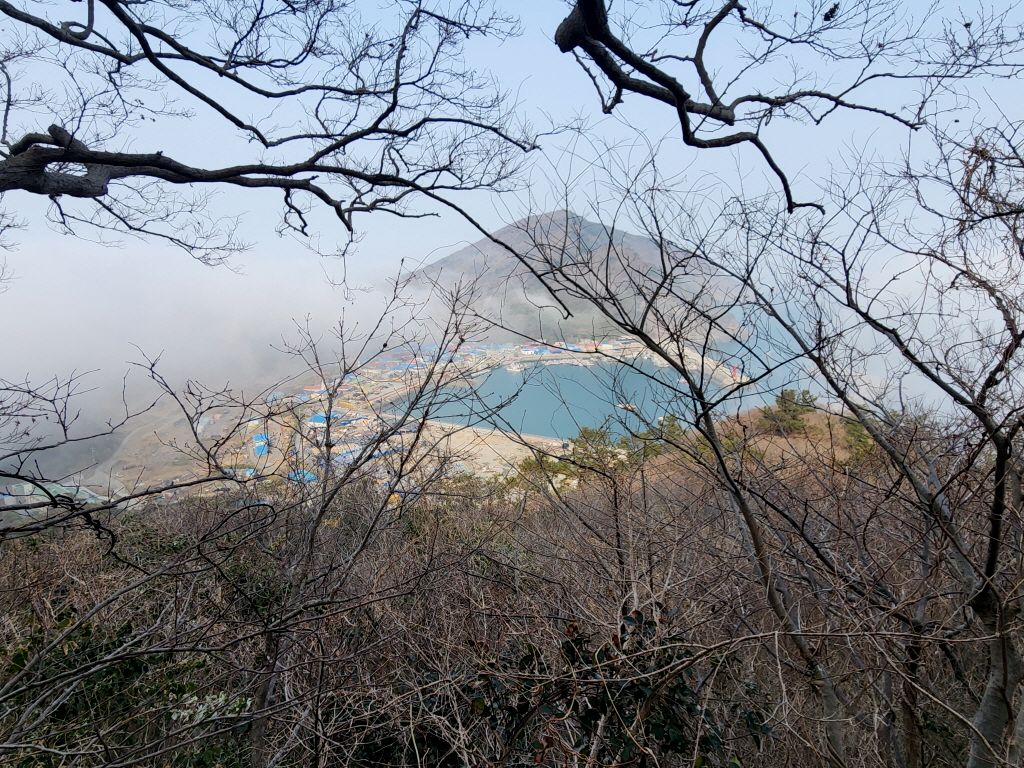 해무 위로 이따 가야할 망재산(171m) 정상이 섬처럼 보이는... 아! 원래 섬이었지 ㅋ