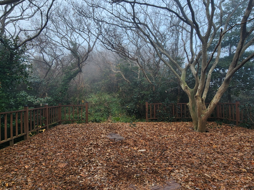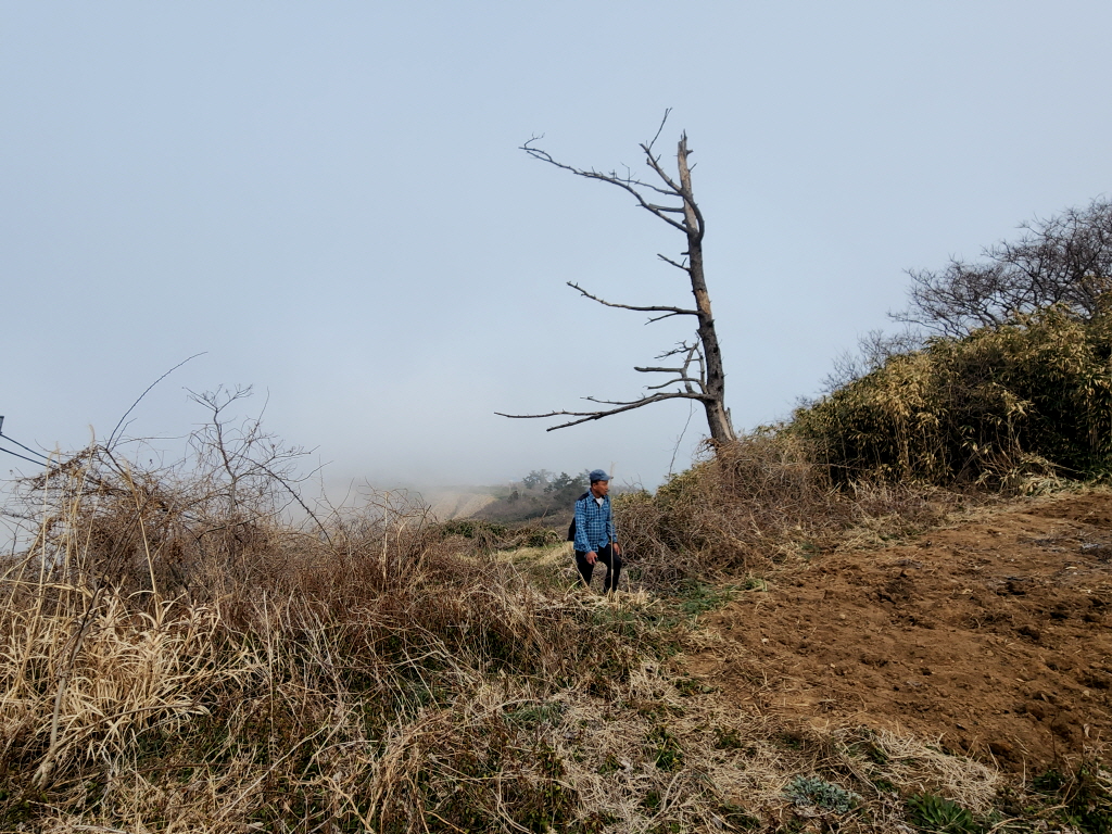 해무를 뚫고 봉화산 정상에 올라왔지만 주변이 나무에 막혀 조망이 보이지 않아 조망은 포기하고